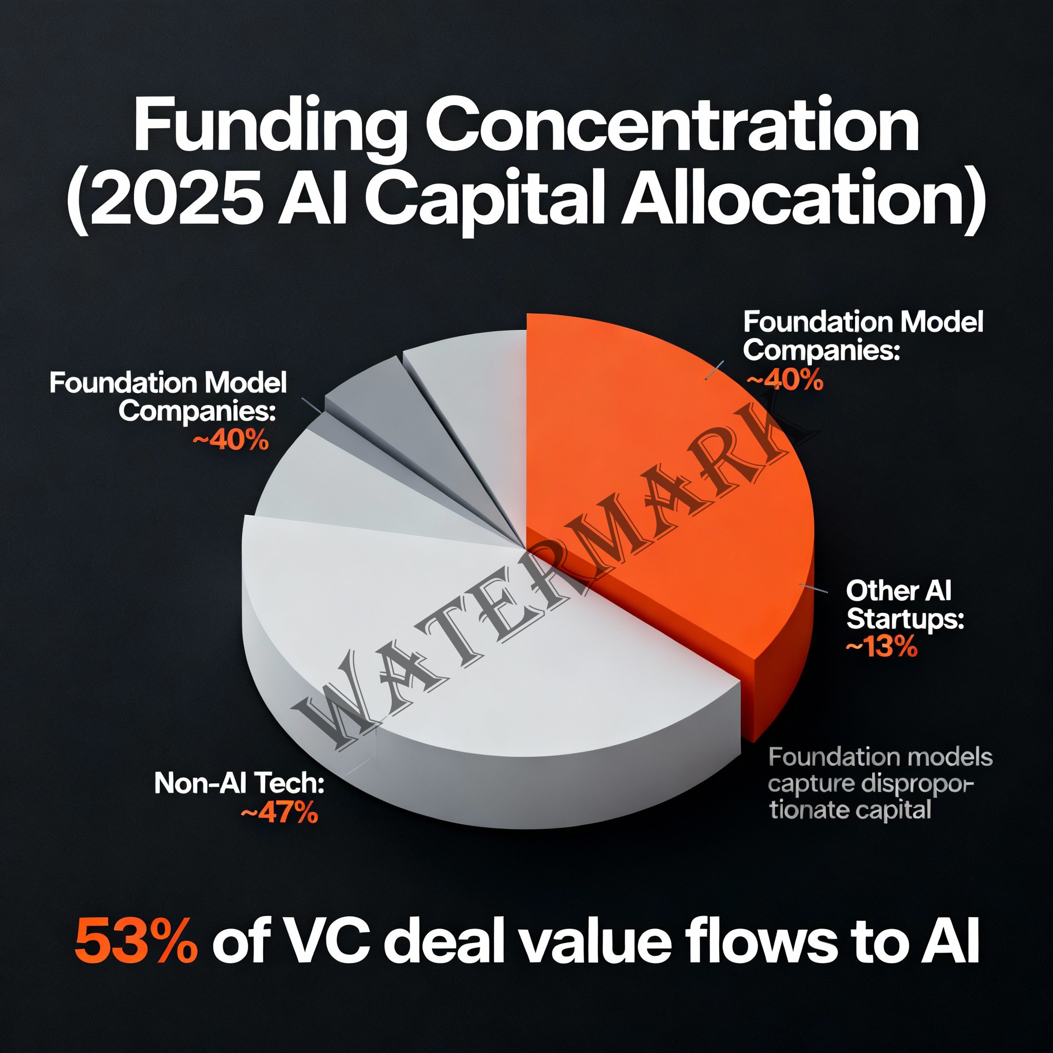 • Foundation model companies (OpenAI, Anthropic, xAI) alone captured 40% of global AI funding in 2025