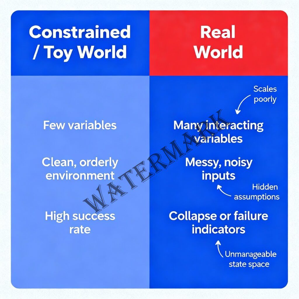Lighthill was unimpressed. The demonstrations, he argued, showed systems operating in “playpen worlds” of limited complexity. The moment you introduced the messiness of reality—unpredictable lighting, ambiguous instructions, unexpected obstacles—these systems crumbled.